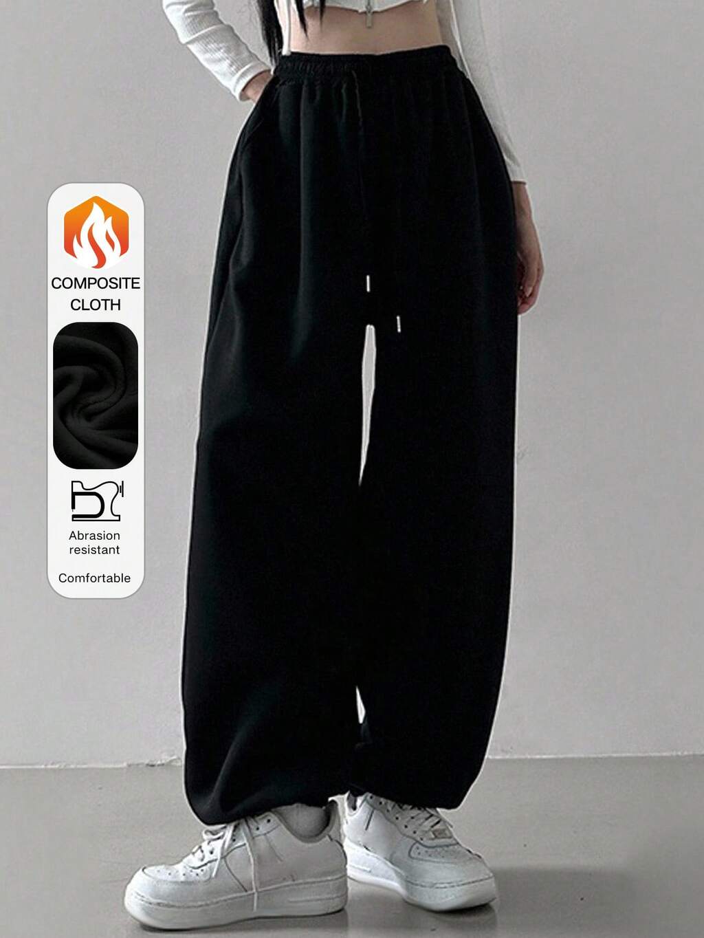 Pantalones de chándal de mujer con cintura elástica, unicolor, ajuste holgado y cordón, para otoño