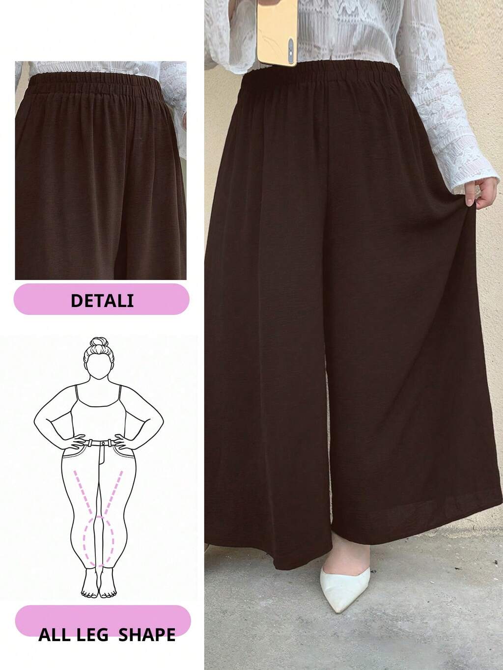 Dazy Plus Pantalones/Culotte de pierna ancha de unicolor talla grande, minimalista y de moda, adecuados para verano, ropa de otoño, pantalones de maestro