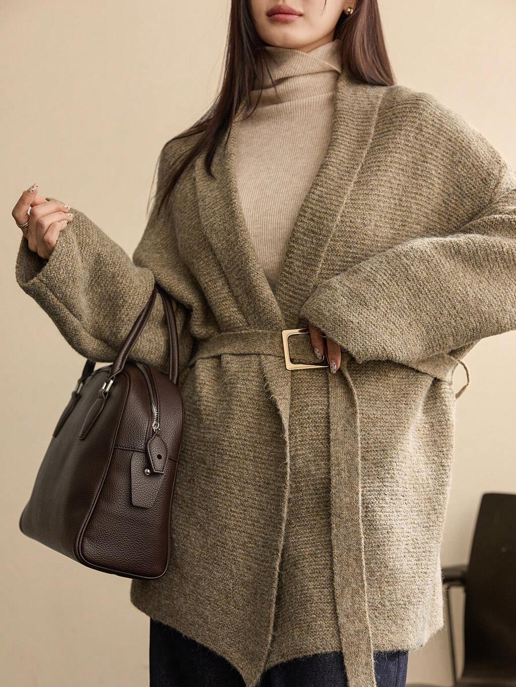 Cárdigan elegante para mujer, estilo casual de negocios, cintura ceñida, adecuado para otoño e invierno
