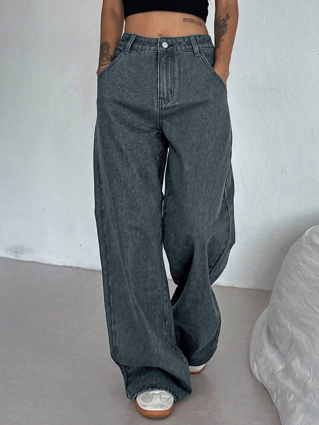 Jeans anchos de pierna ancha de unicolor sueltos, versátiles y casuales para uso diario y viajes