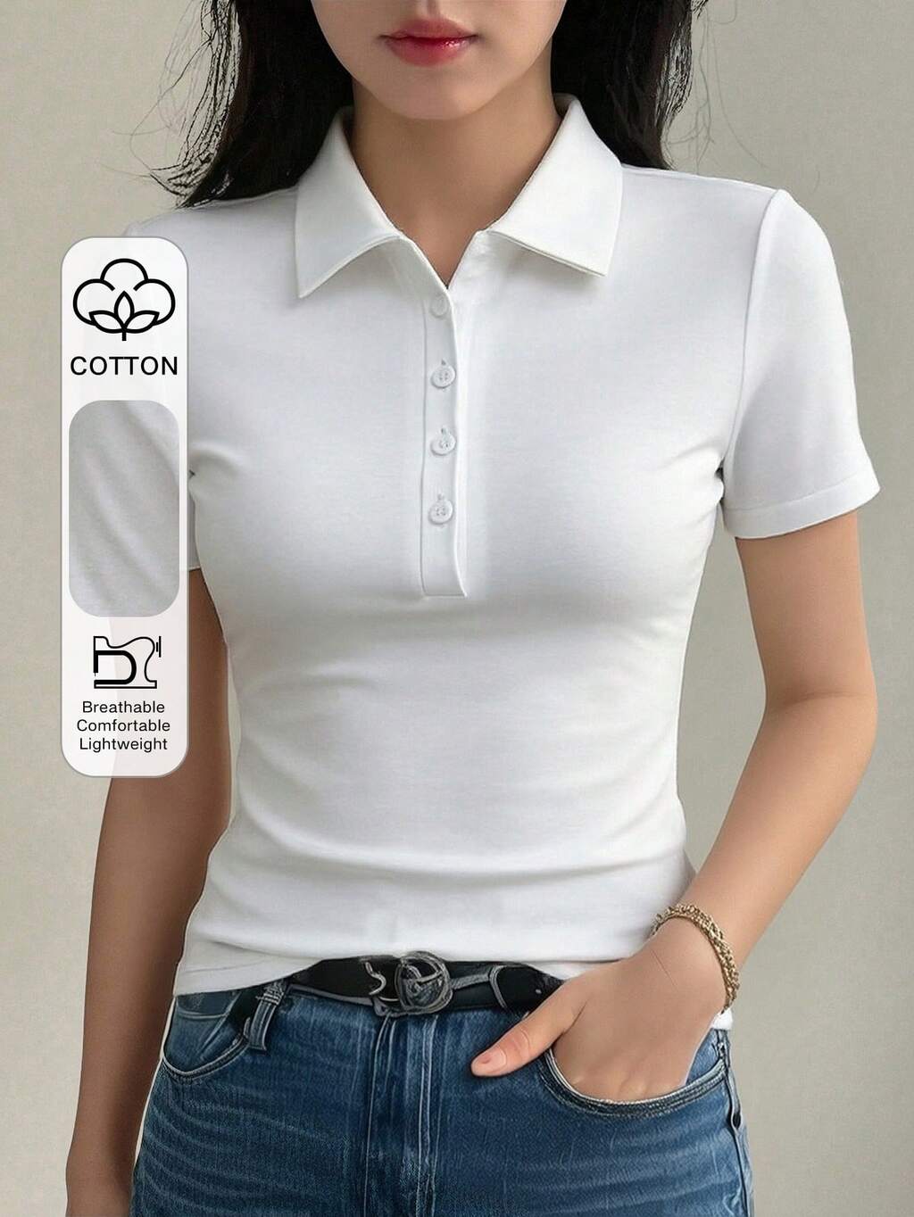 Camiseta de mujer de manga corta, cuello redondo, ajustada y de color liso para el verano