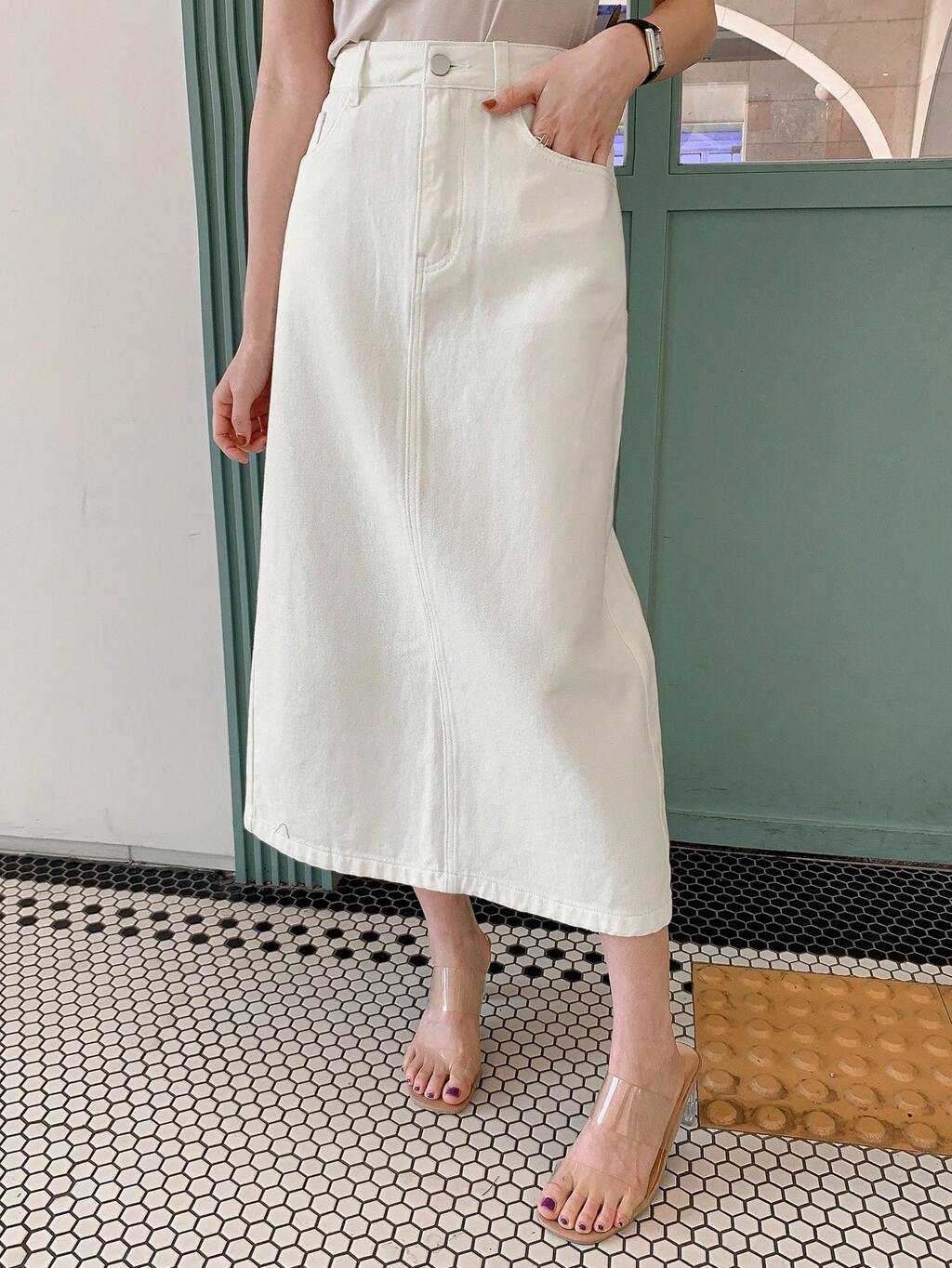 Falda vaquera larga recta de mujer de unicolor con bolsillo con abertura