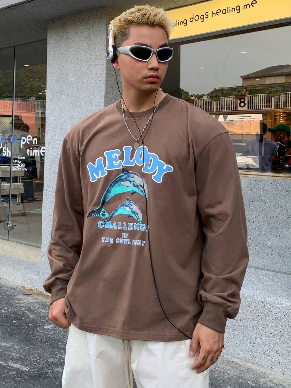 Pull col rond à manches longues, épaules tombantes, imprimé lettres, style casual, automne