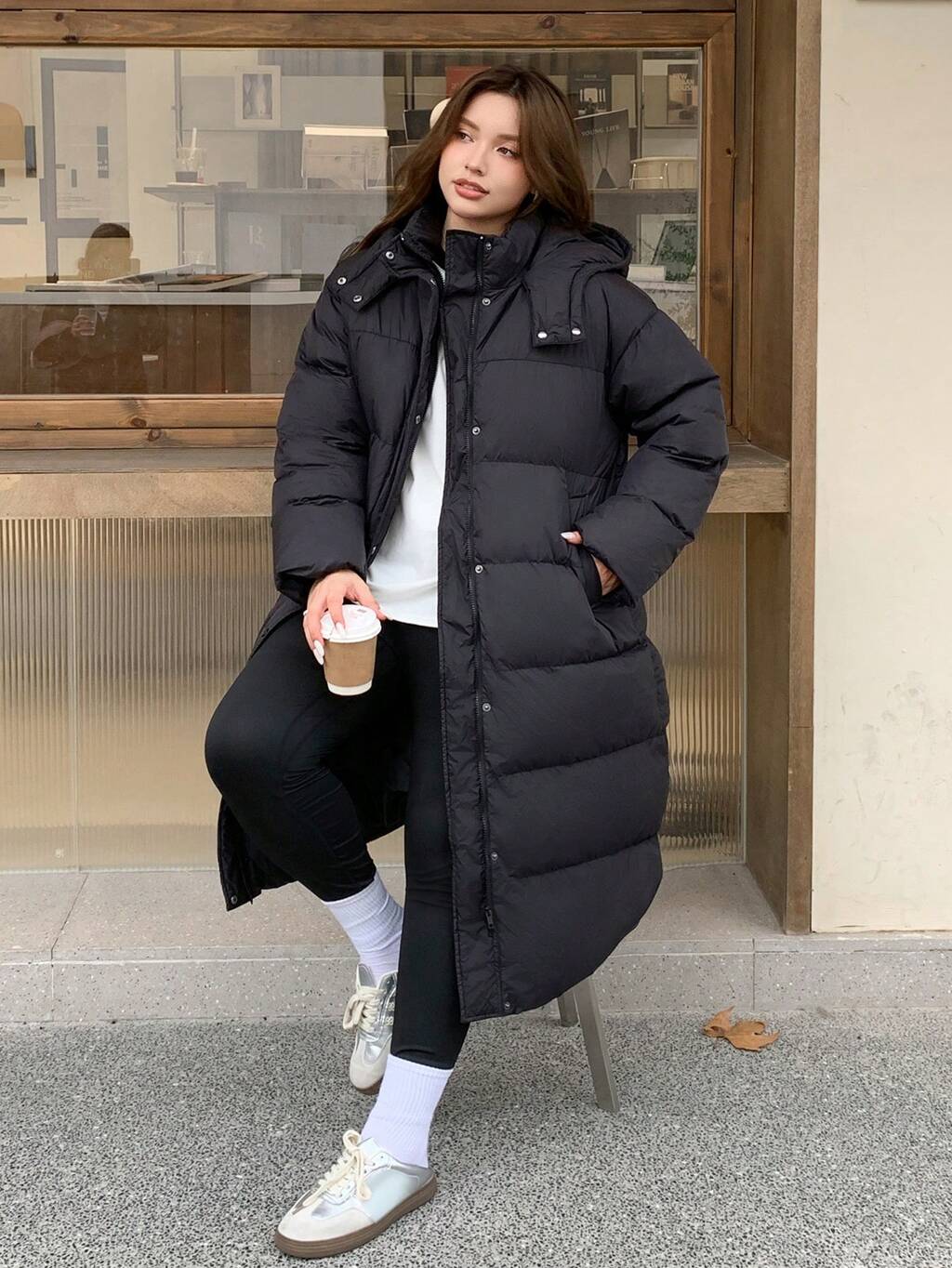 Dazy Plus Manteau matelassé long, épais et chaud avec capuche, couleur unie, grande taille. Vêtements d'hiver