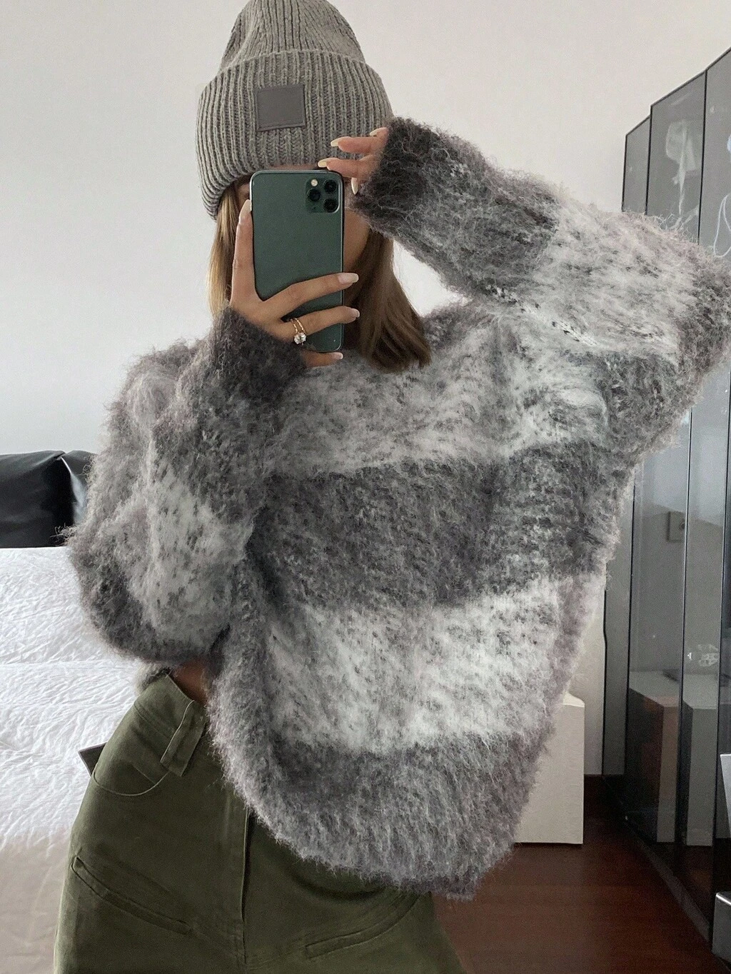 Femmes Loose strass Decor Col Rond Manches Longues Tricot Décontracté Style de Rue, Automne/Hiver