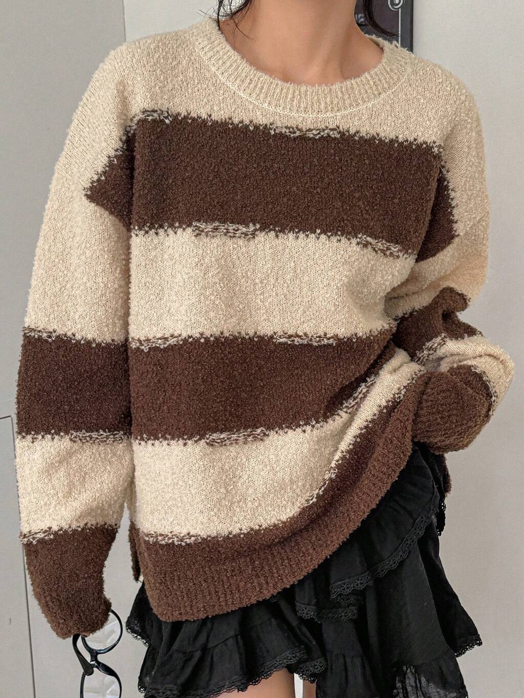 Nouveau pull ample décontracté à rayures et contrastes de couleur pour femmes, automne