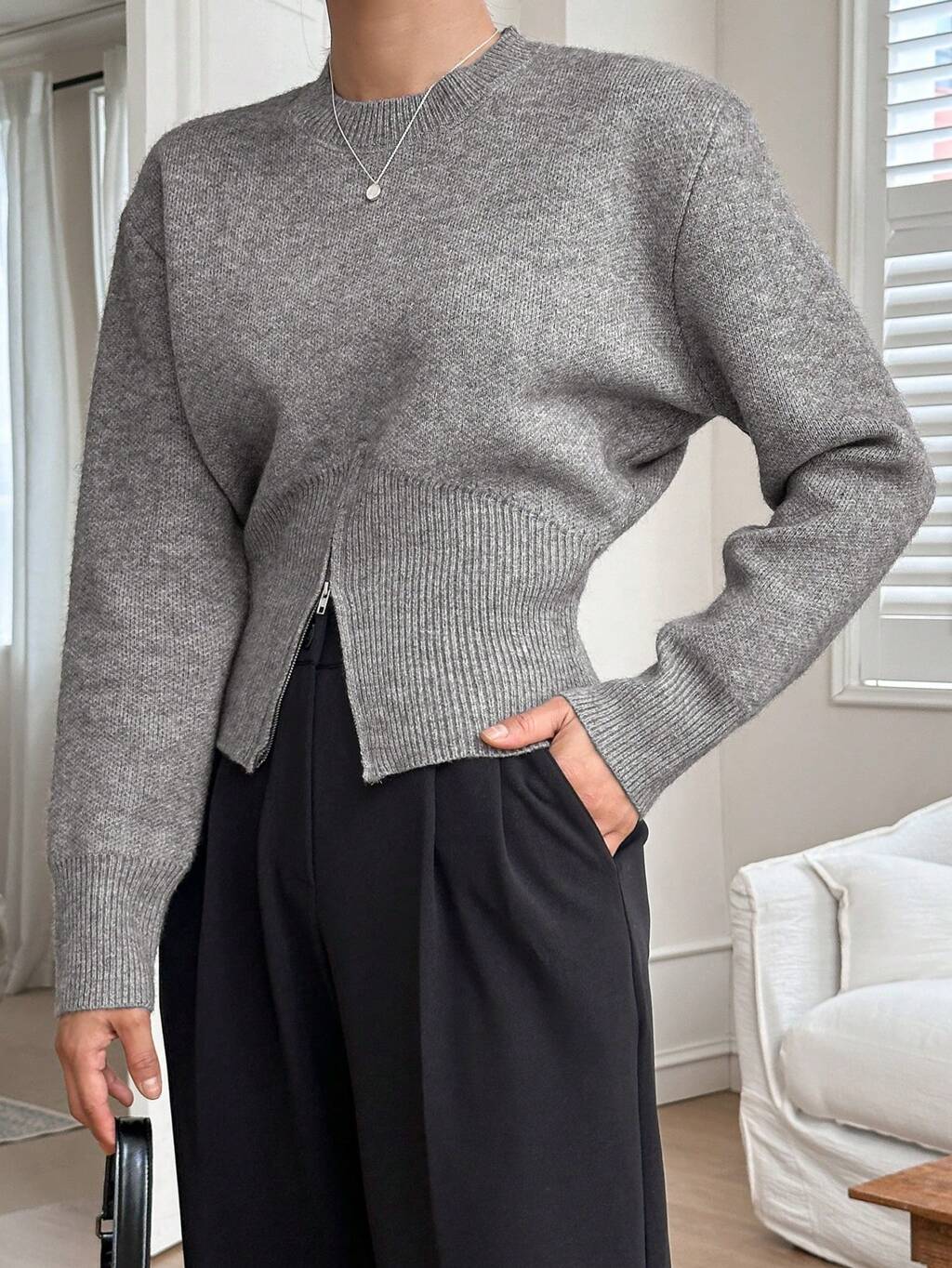 pull tricoté ajusté, manches longues, polyvalent et minimaliste pour l'automne