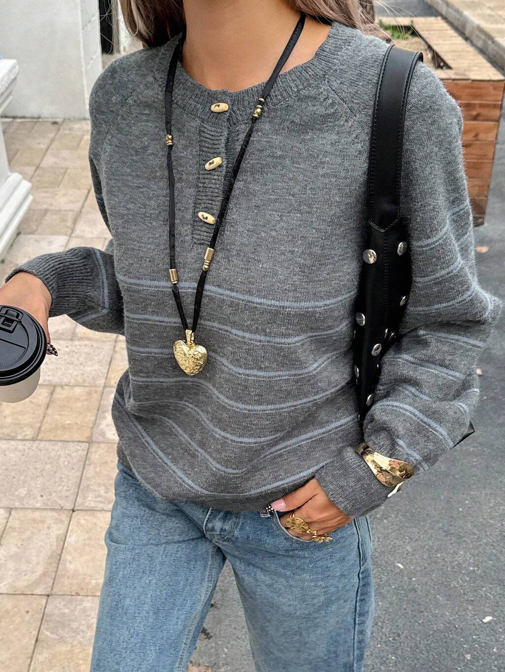 Pull décontracté à manches raglan rayées pour femmes, automne