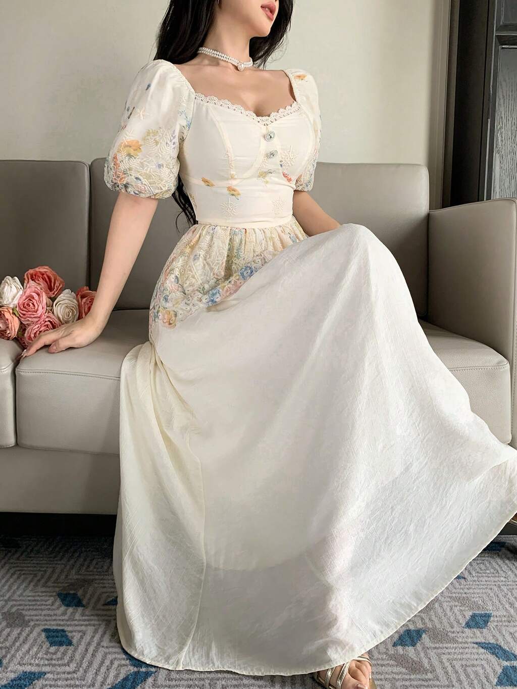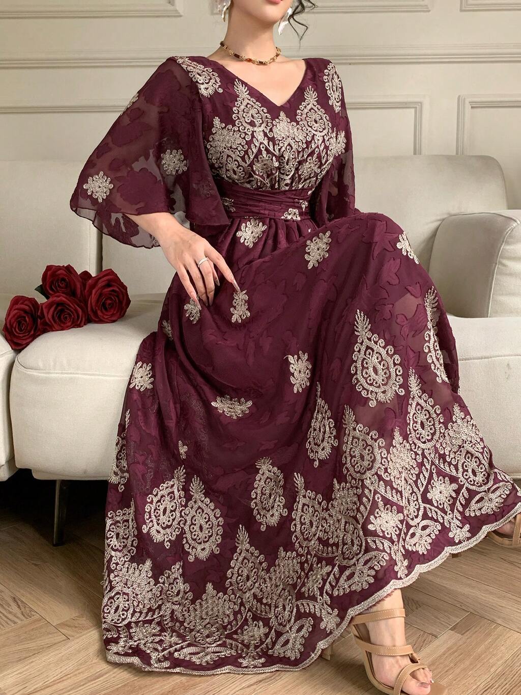 Robe longue élégante en dentelle texturée pour femmes, convient pour le printemps et l'été