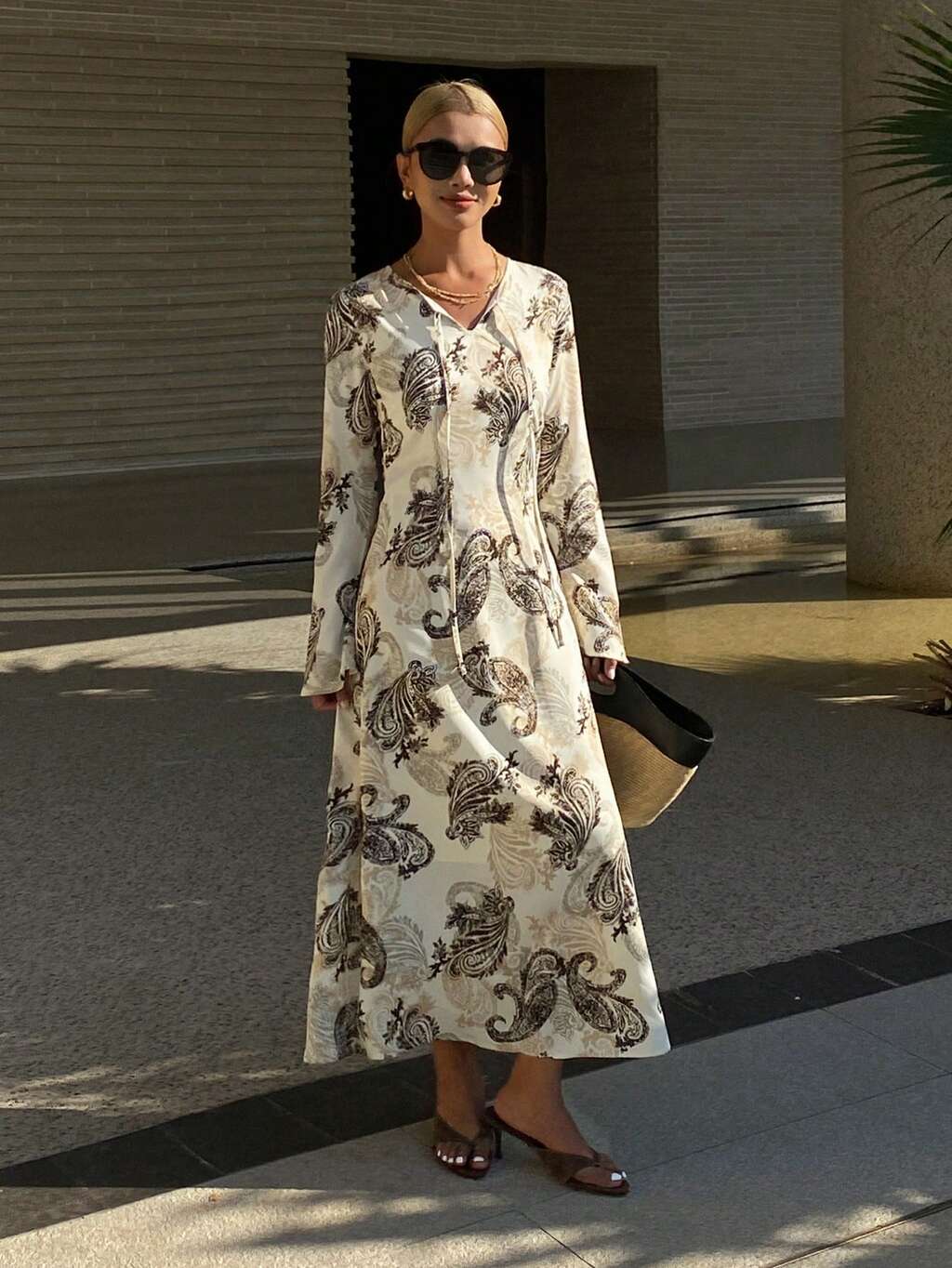 Robe longue élégante à col V profond avec imprimé floral pour femmes