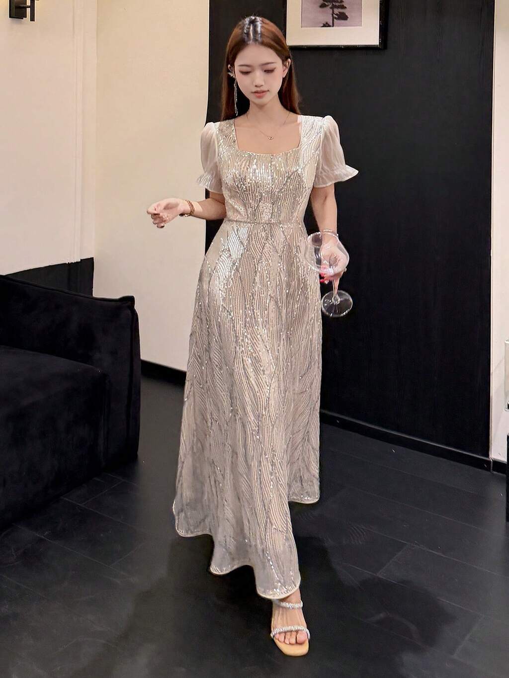 Robe de soirée longue de luxe Top de gamme ornée de sequins, robe de soirée élégante pour l'accueil de fêtes, robe scintillante, robe longue, robe d'été