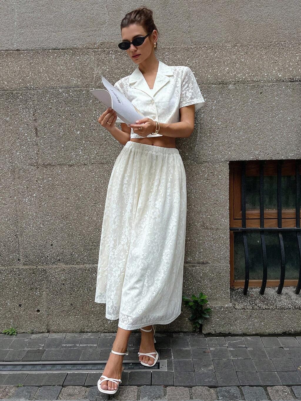 Ensemble 2 pièces Chemise col régulier pour femme + Jupe plissée en dentelle