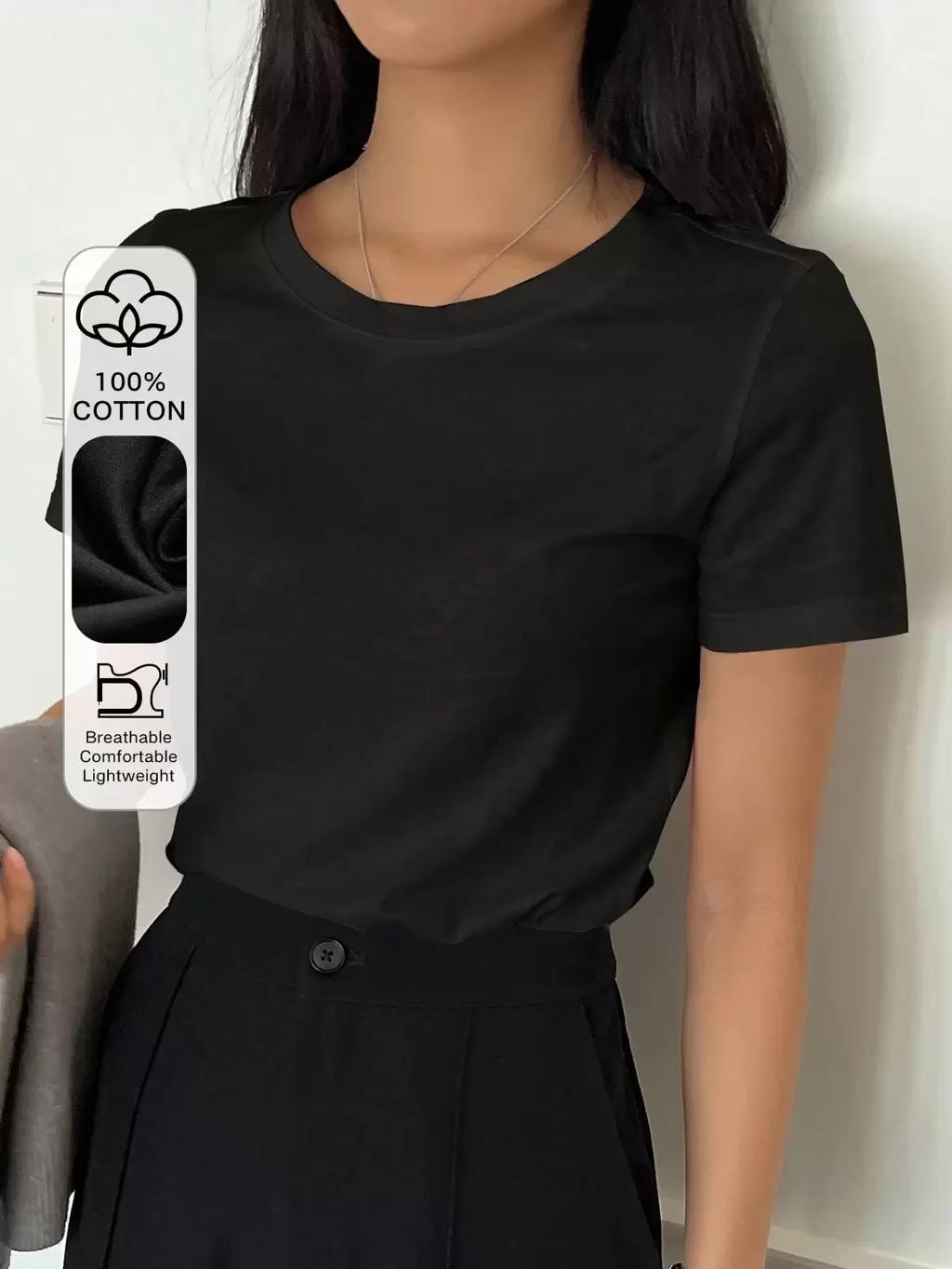 T-shirt col rond décontracté et polyvalent pour femmes, couleur unie