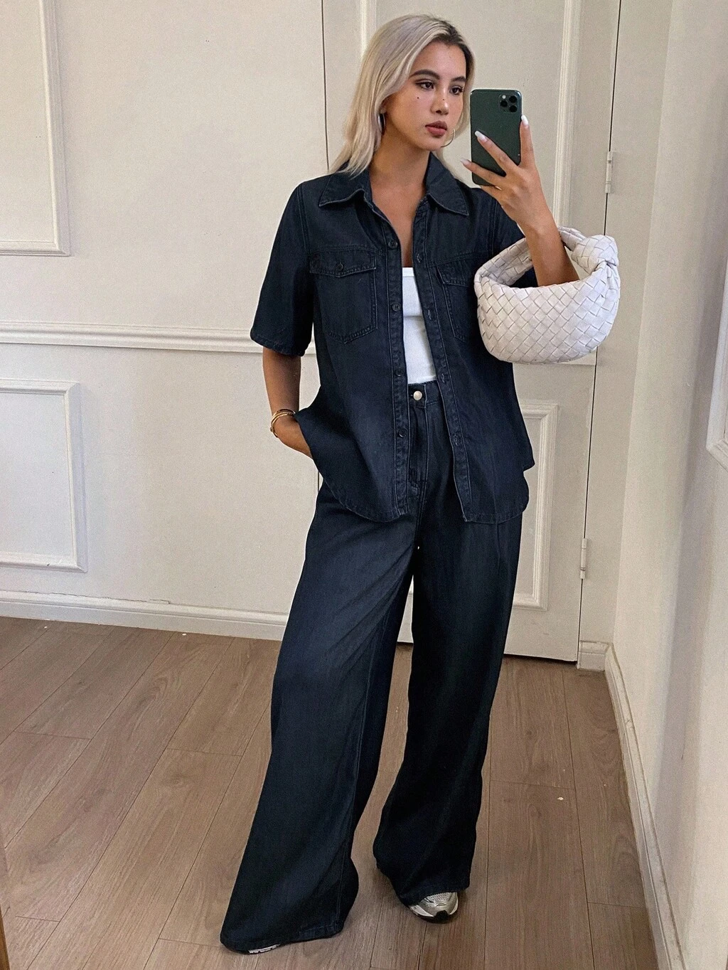 Ensemble chemise en jean décontractée et ample et jean à jambes larges pour femmes