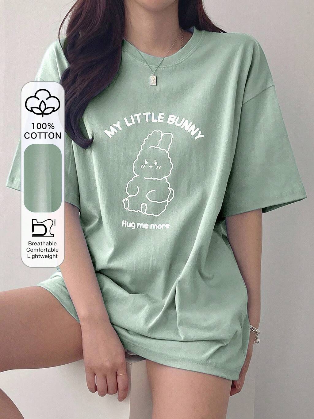 T-shirt décontracté pour femmes avec imprimé de lettre de dessin animé, été Pâques