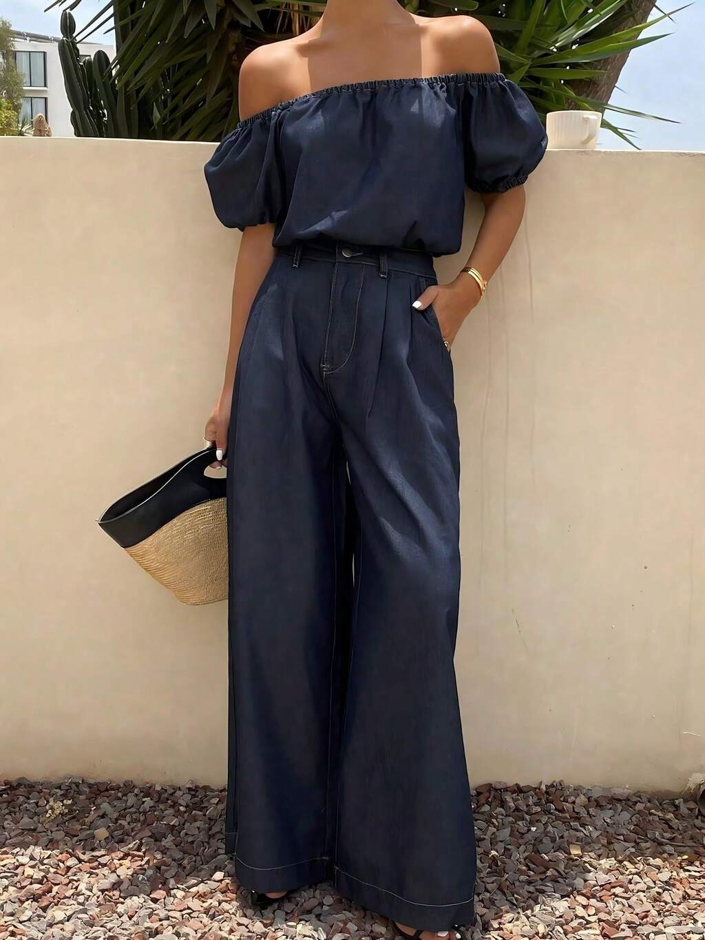 Ensemble en deux pièces en jean pour femmes, Top épaules dénudées
