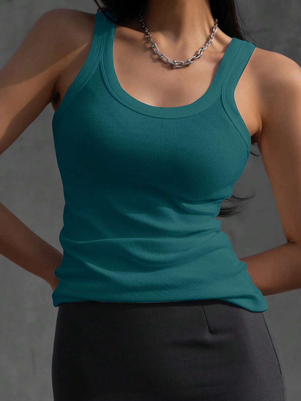 Top Sans Manches Unicolore Côtelé