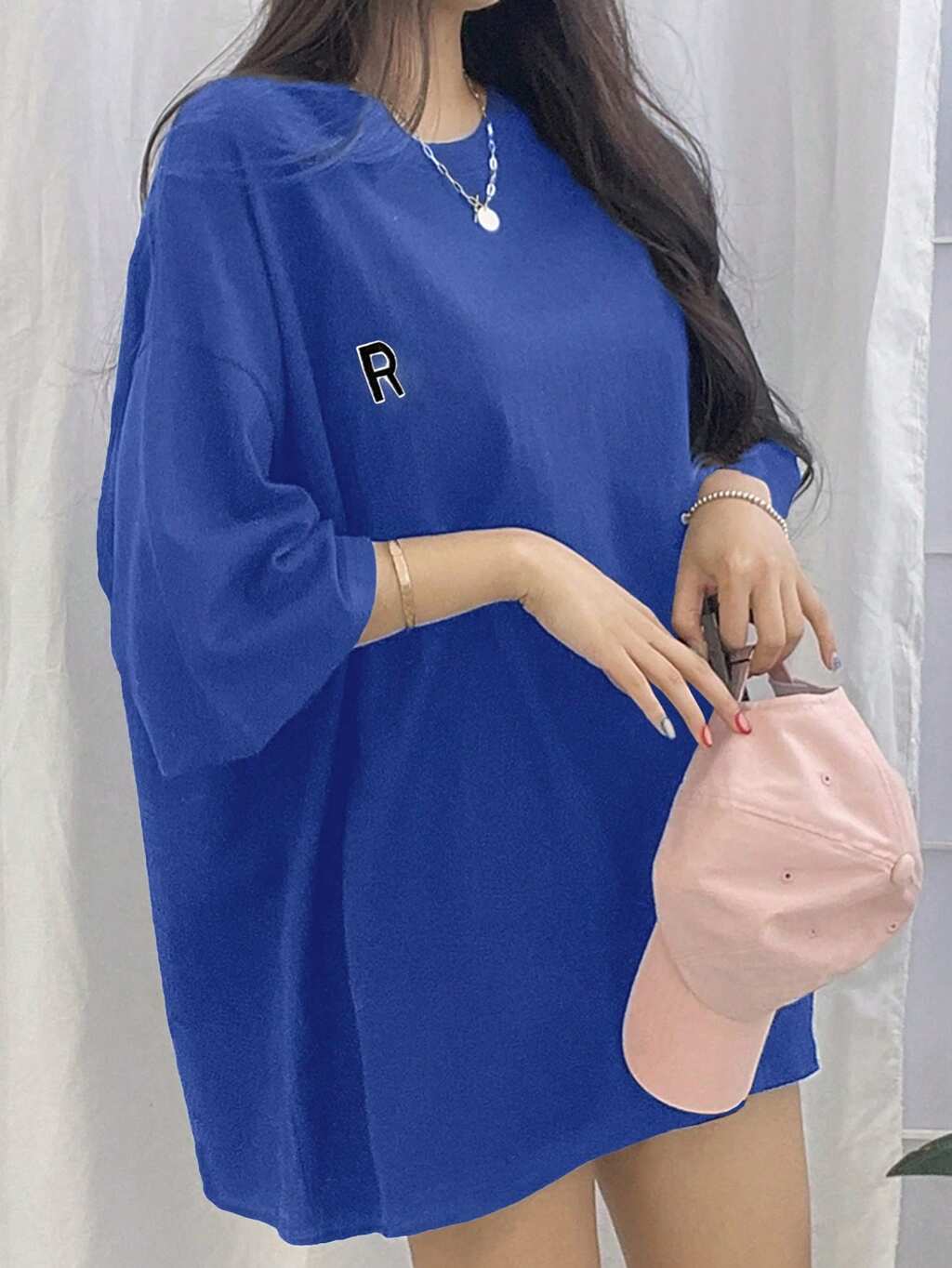 T-shirt surdimensionné à épaules tombantes avec motif de lettres, unisexe