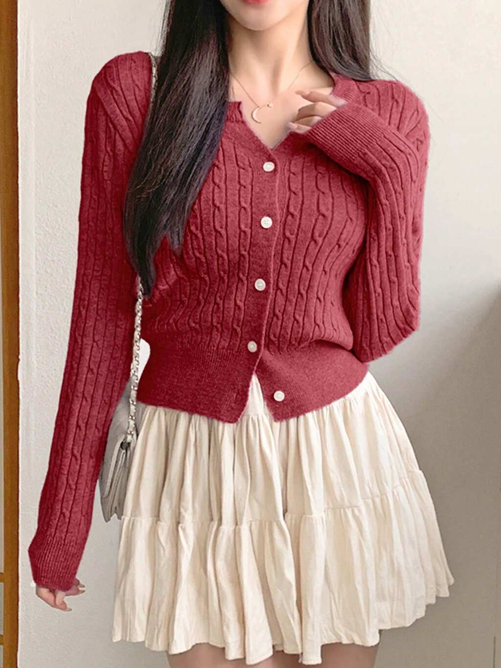 Cardigan en tricot torsadé à boutons devant, couleur unie, pour femmes. Portée décontractée pour tous les jours, automne/hiver