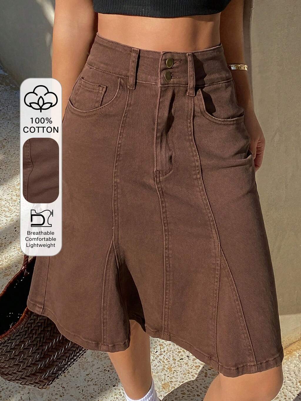 Jupe en jean droite longue décontracté pour femmes avec fente et poches de couleur unie
