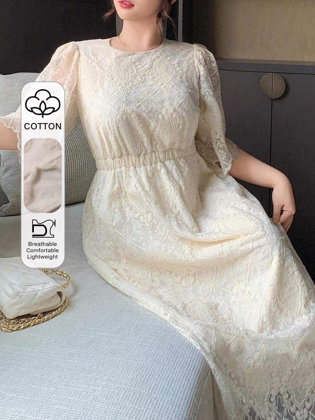 Dazy Plus Abito elegante in pizzo tinta unita di taglia comoda, abito da sole estivo