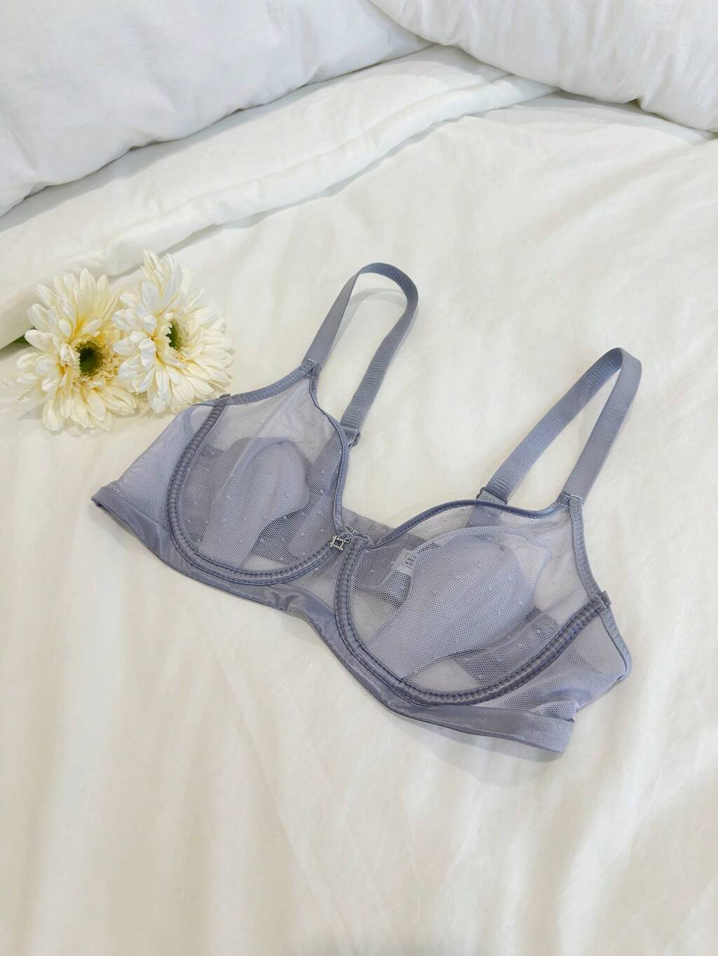 Reggiseno romantico in rete trasparente ricamato, sottile e traspirante, con coppe imbottite, lingerie da donna