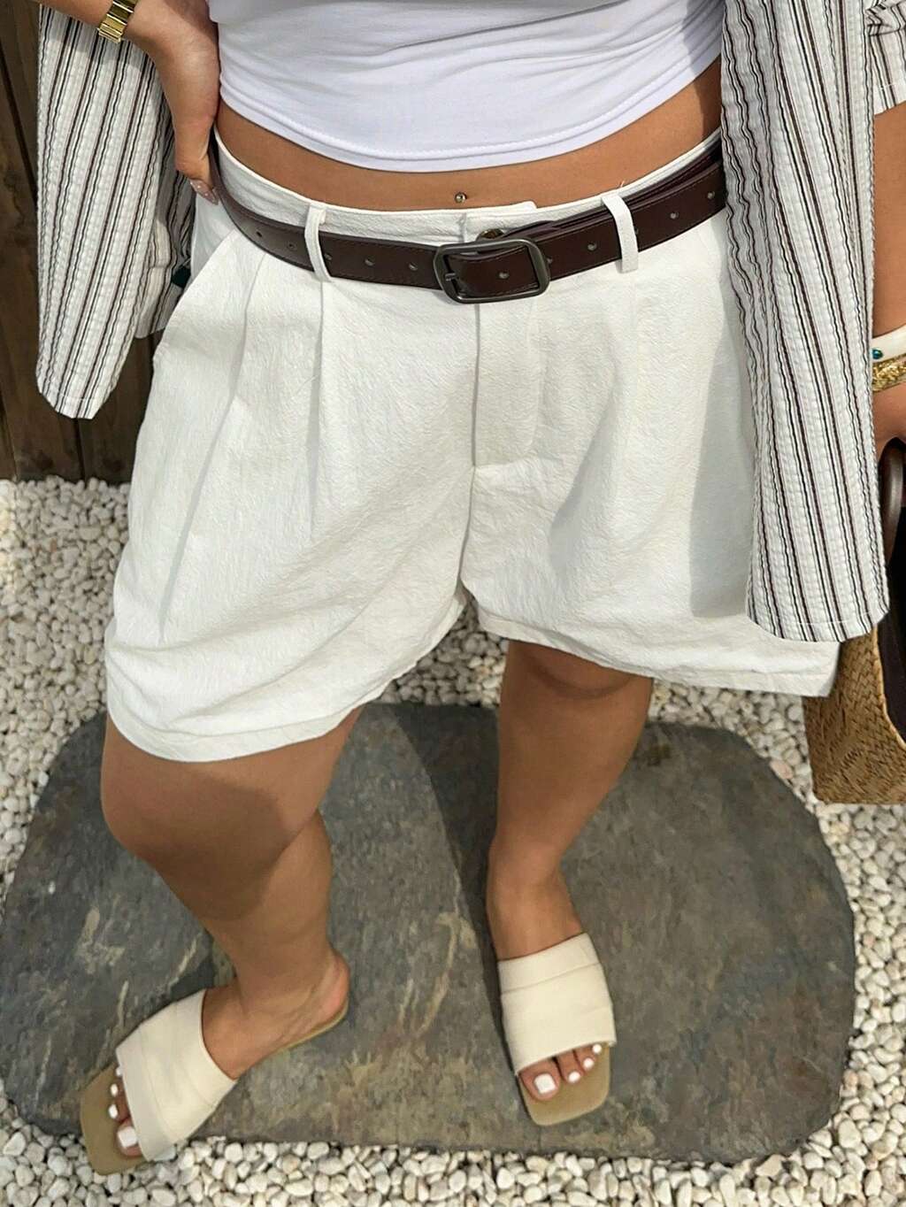 Dazy Plus Pantaloncini casual con pieghe e orlo arrotolato, di colore unito, per donna taglie forti, primavera/estate