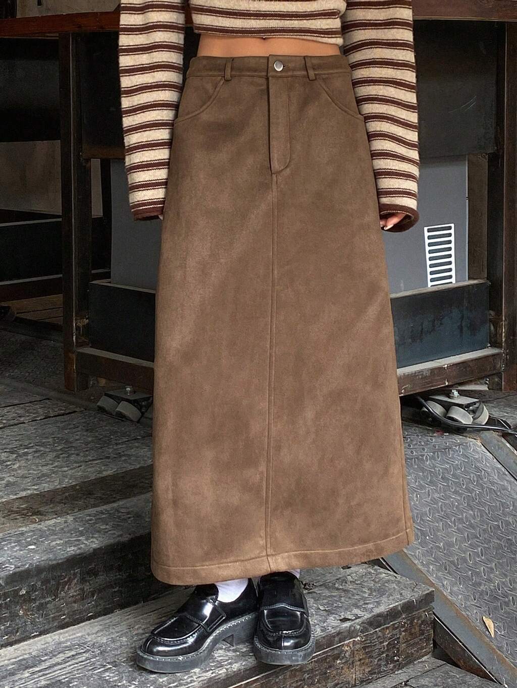 Gonna casual in pelle PU con blocchi di colore, gonne da donna per autunno e inverno