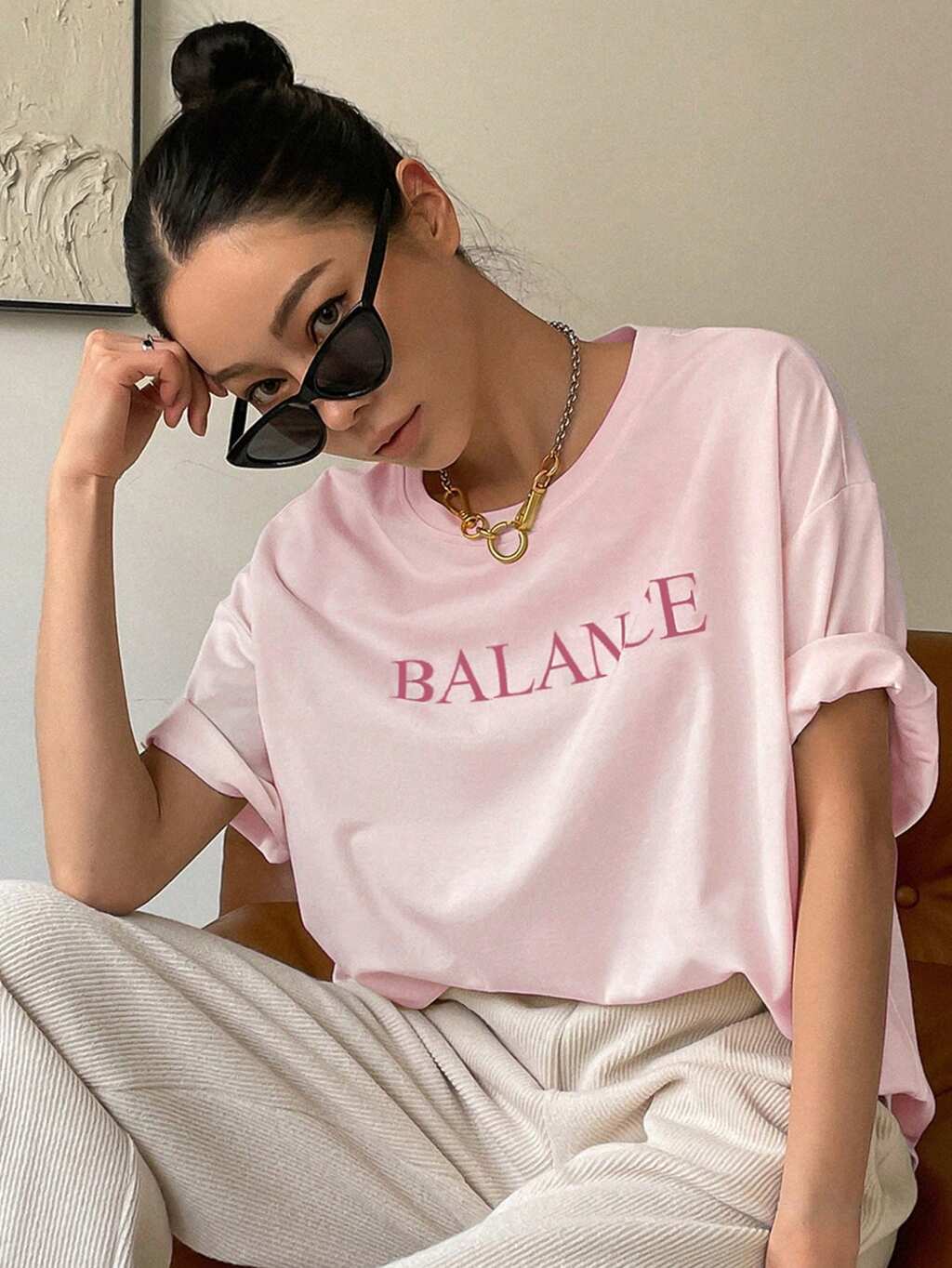 Maglietta oversize estiva con stampa di lettere e spalle scoperte, maglietta con grafica