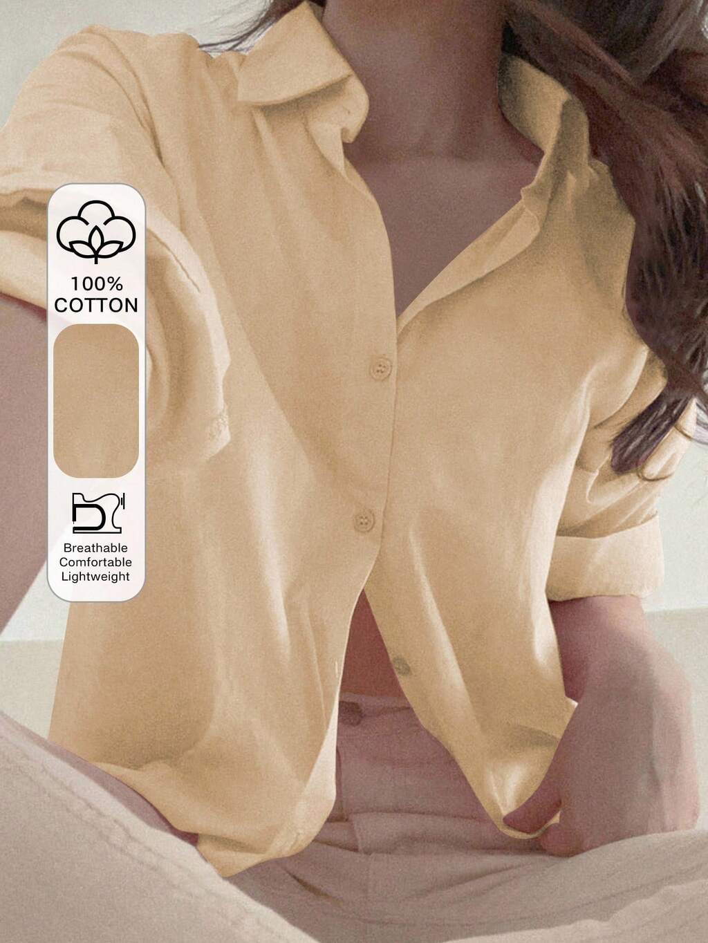 Camicia casual da donna morbida e ampia, a maniche lunghe, monopetto