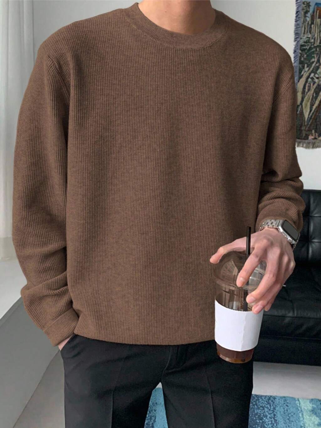 Maglione girocollo marrone tinta unita da uomo, autunnale