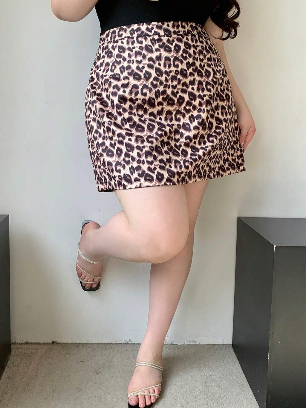 Dazy Plus プラスサイズ レオパード柄ショートスカート、オールシーズン チーター柄