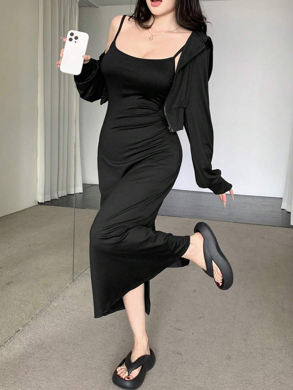 2点セット レディース キャミソールドレス & タイトボディコンミニドレス、秋服
