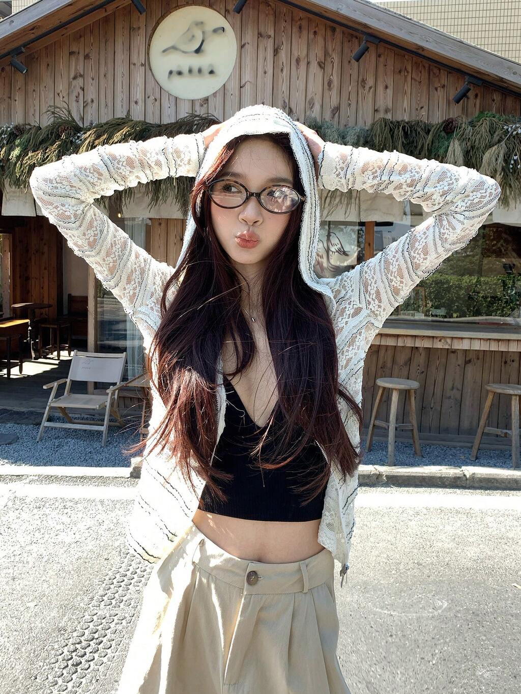 女性用 韓国風レース シアー ニッチ スリミング フード付きジップアップジャケット