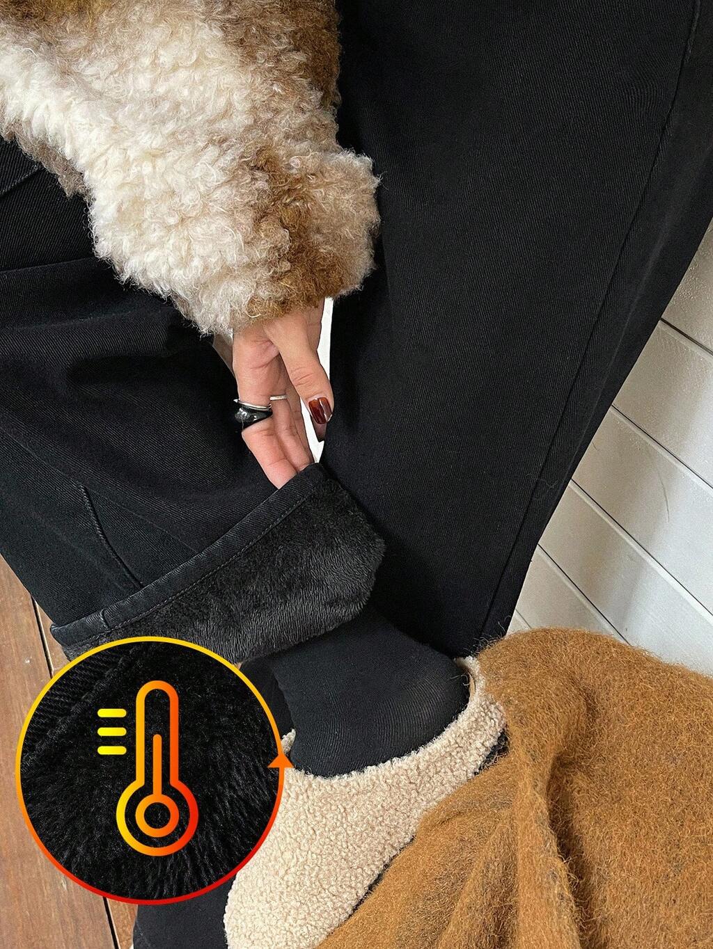 女性用サーマルライニング ストレートレッグジーンズ、ヴィンテージ ハイウエスト スリムフィット ワイドレッグジーンズ、秋冬用サーマルライニング