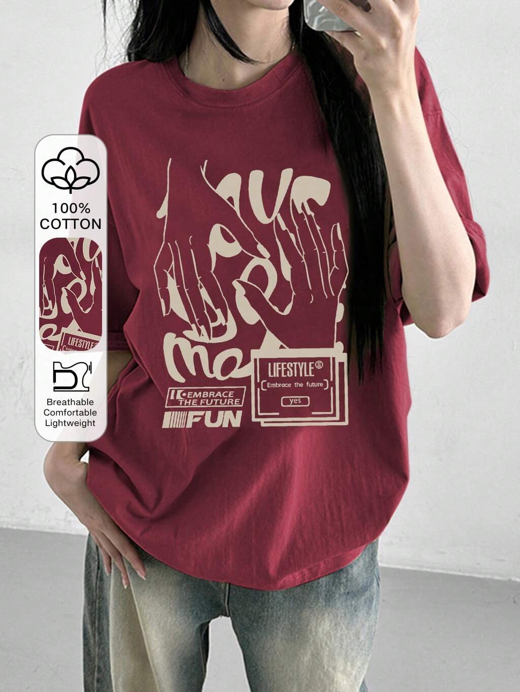 ストリートスタイルの大きめグラフィックデザインTシャツ、 LIFESTYLE 未来を受け入れる、EMBRACE THE FUTURE FUN、夏のオーバーサイズTシャツ ストリートウェア