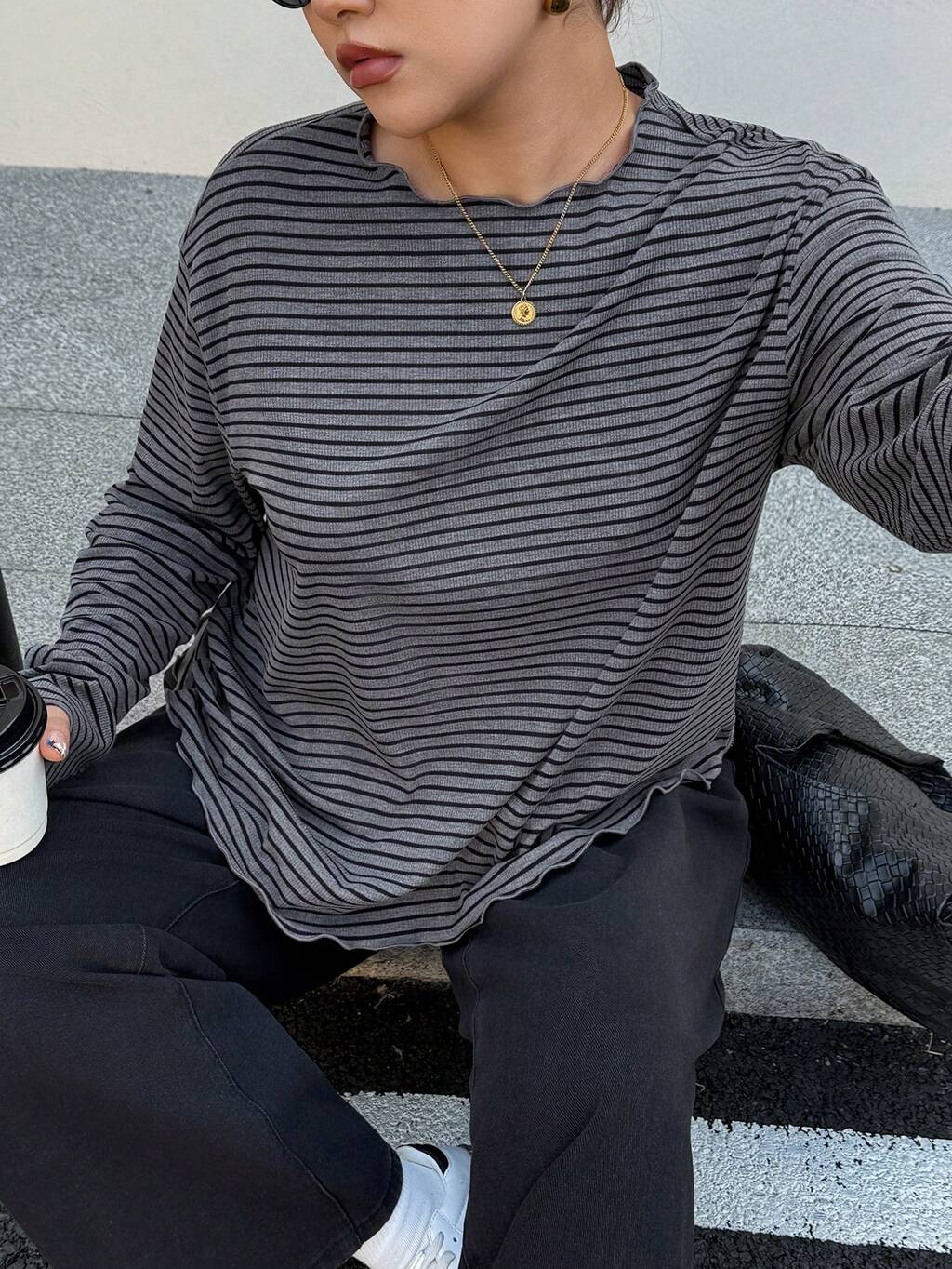 Dazy Plus オーバーサイズ ストライプ 半袖 黒白 サマーTシャツ 春服
