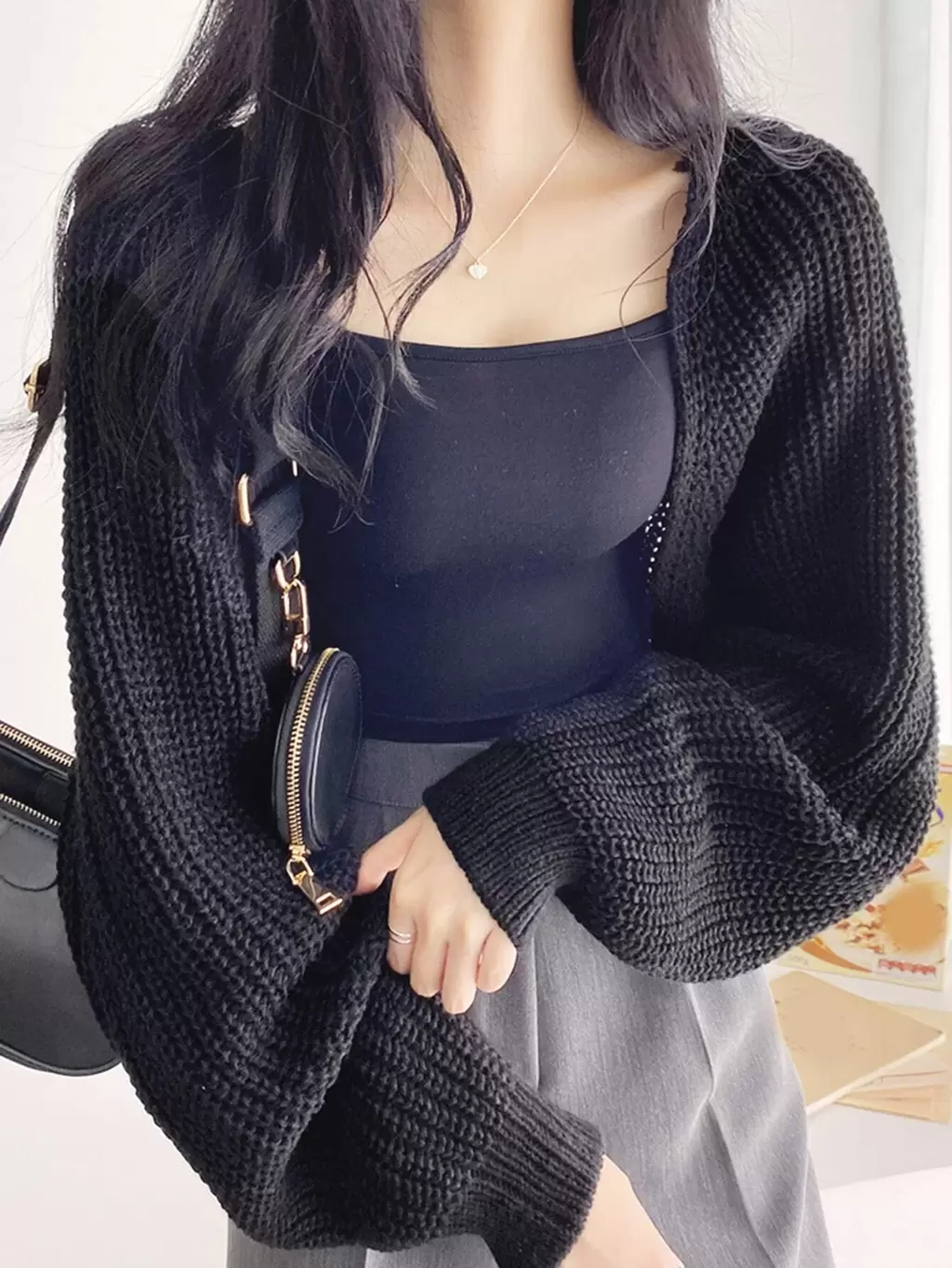 コウモリ型スリーブ リブニット ダスターカーディガン、長袖トップス、秋の女性服