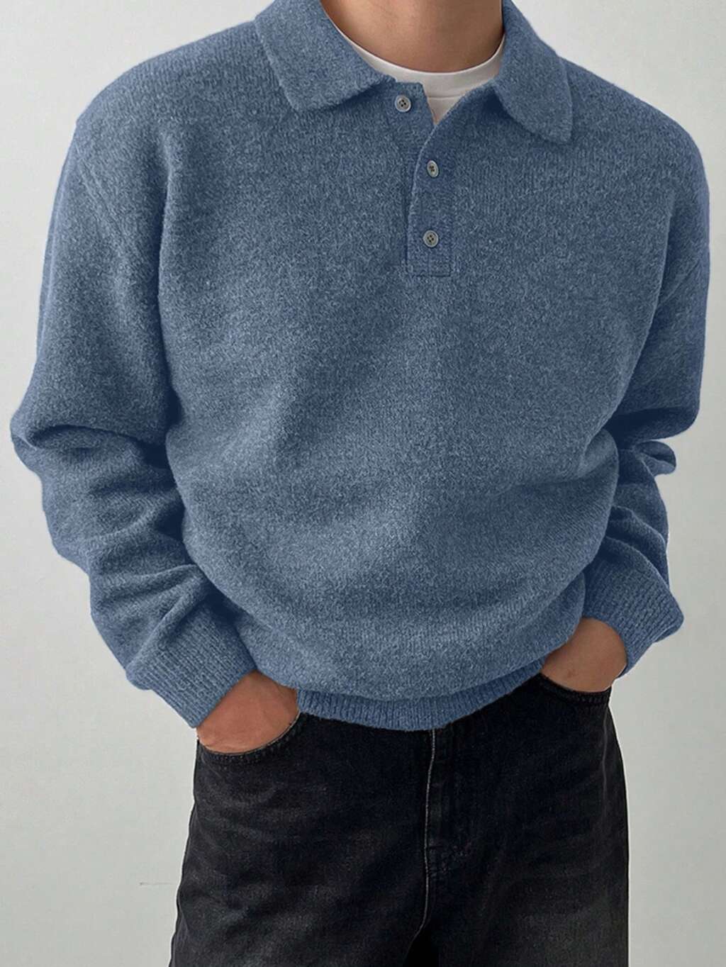 男性用 無地 ボタンアップ カジュアル 長袖セーター、秋シーズンに適しています