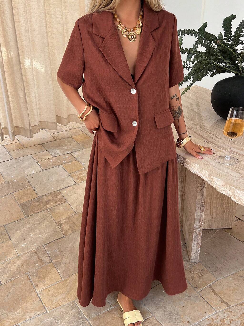 여성 캐주얼 질감 포켓 블레이저 재킷 및 스커트 2피스 세트, 봄/여름