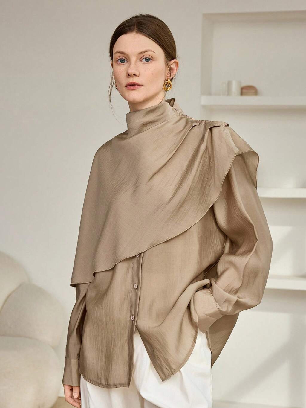 여성용 루즈 시폰 블라우스, 캐주얼 비즈니스 오피스 웨어, 긴 소매, 숄 칼라, 봄, 여름, 가을에 적합