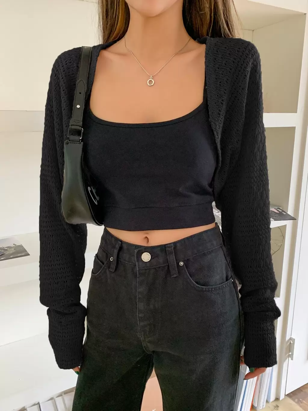포인텔 니트 오픈 프론트 크롭 가디건, 긴팔 탑, 가을 의류