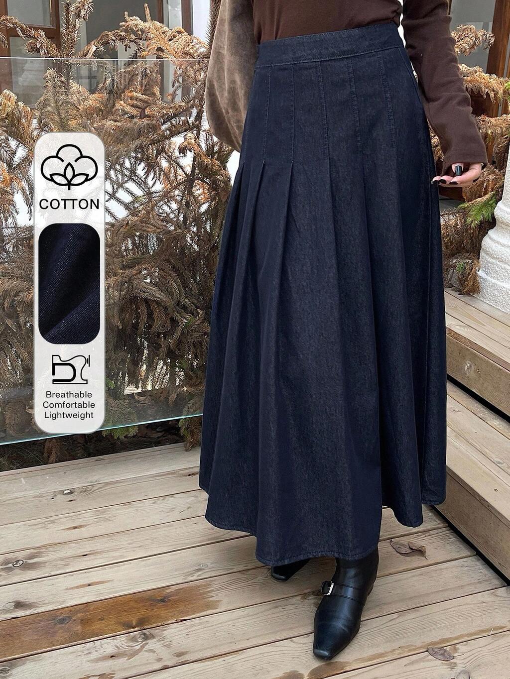 키 큰 여성용 플리츠 롱 캐주얼 우아한 데님 스커트