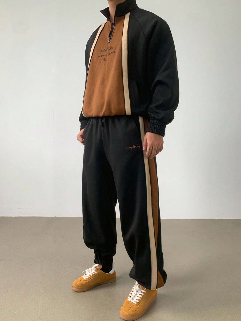 Men's Colorblock Half-Zip Pullover Sweatshirt Set, Autumn