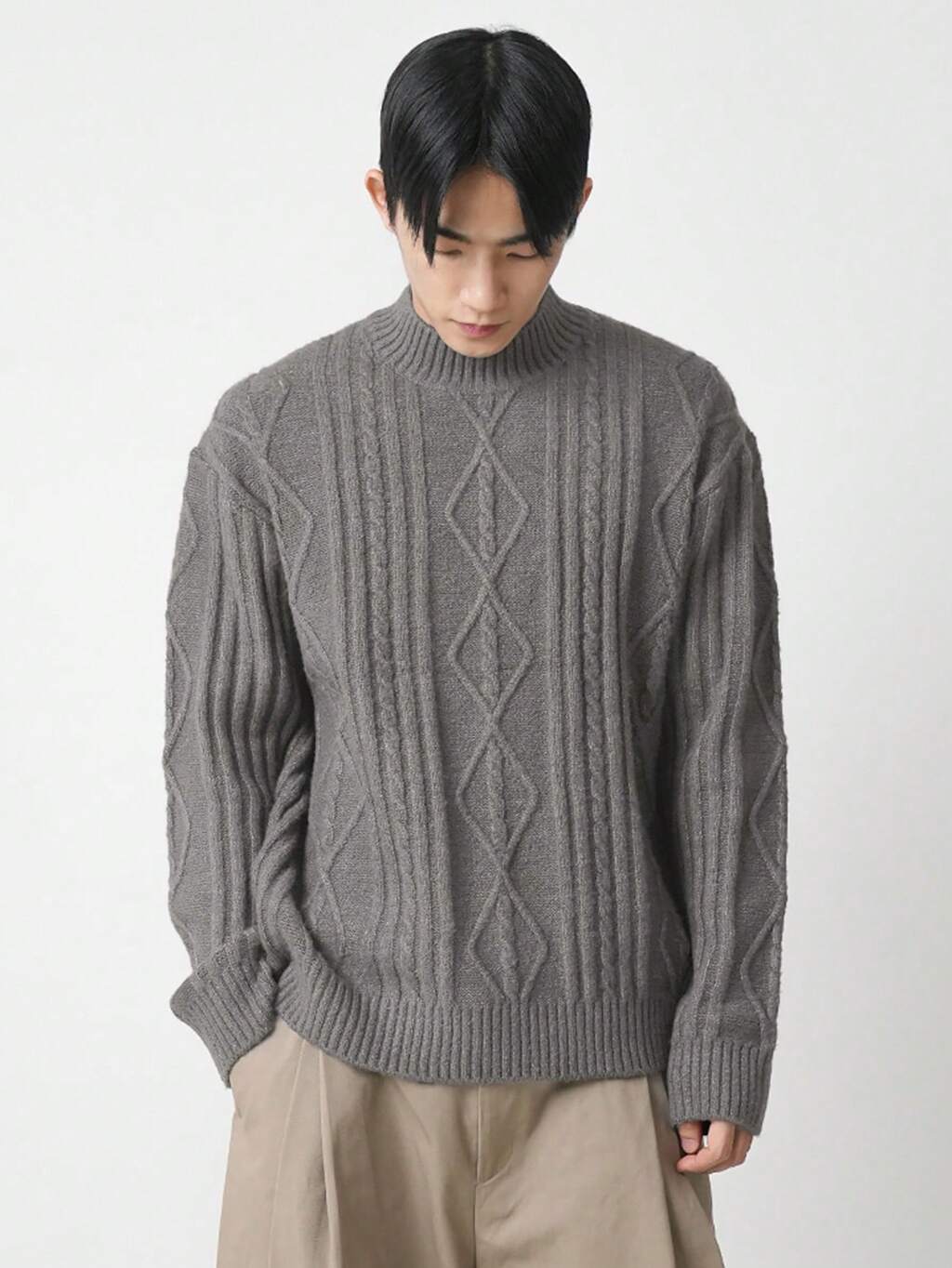 Men's Asymmetrical Twist Cable Cable Knit Sweater, White,Fall Clothes