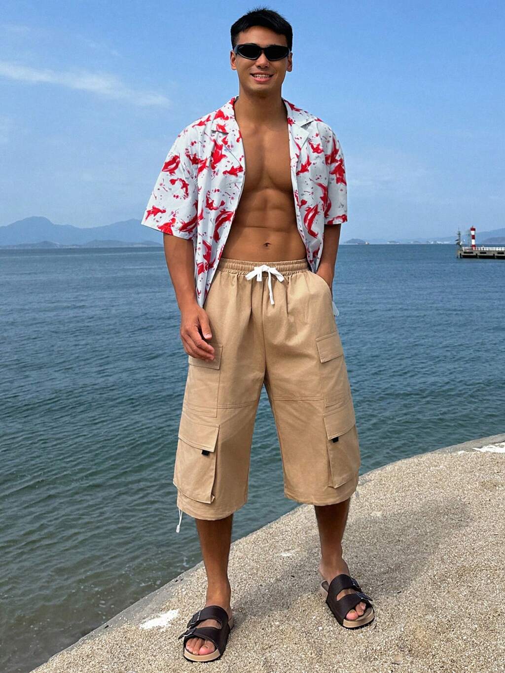 Men's Floral Print Beach Shorts, Casual Summer Vacation Style