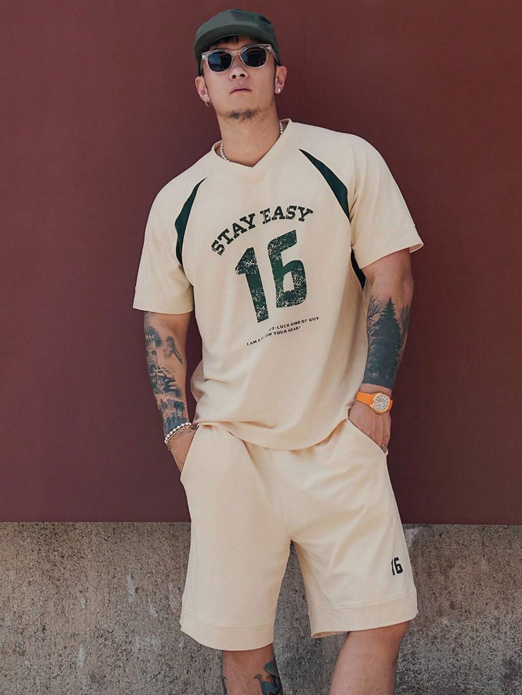 Men's Number & Letter Print Patchwork Sports Tee Set, Summer