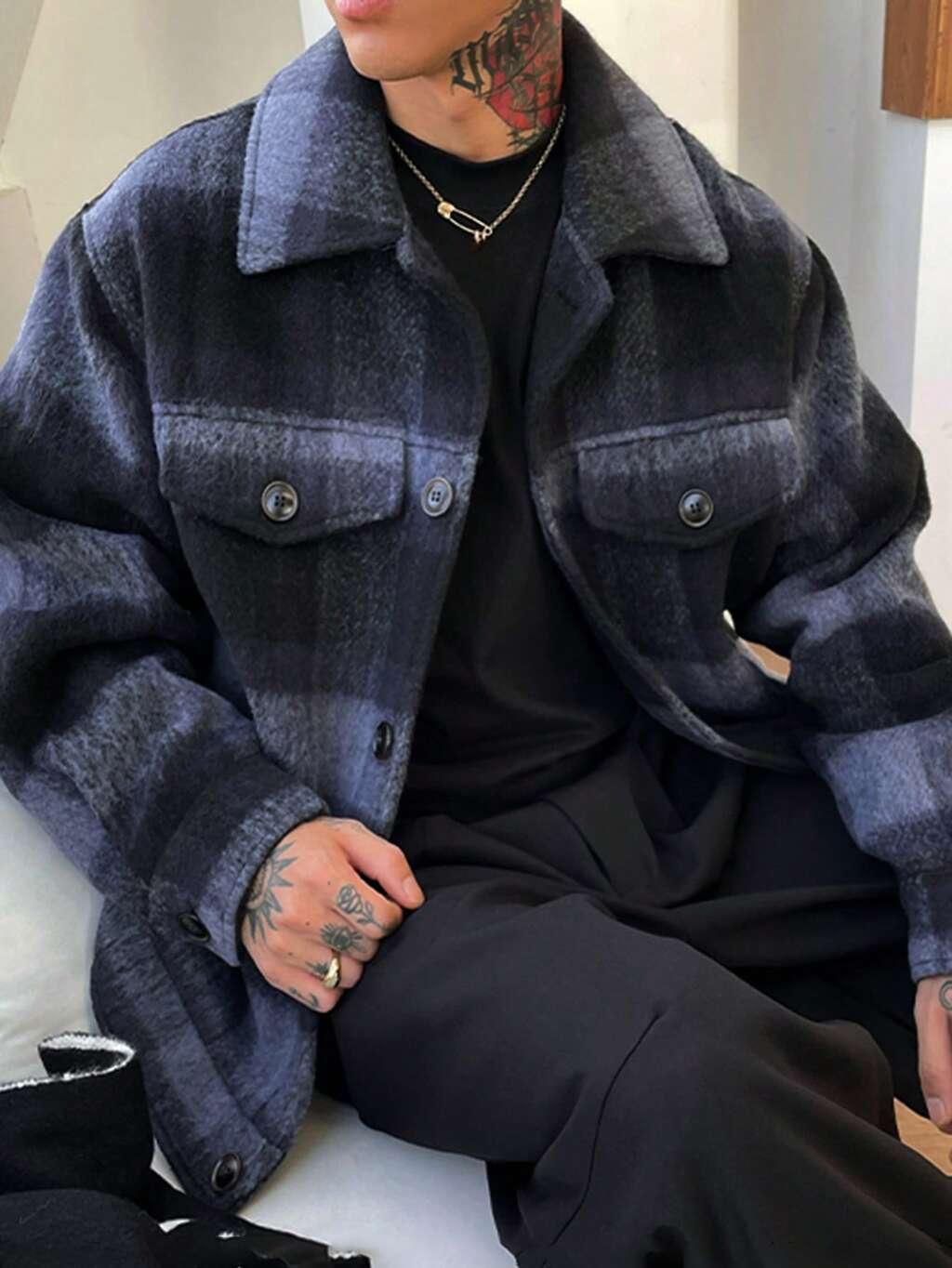Men's Solid Color Brown Crop Top Paired With Street Style Jacket, Autumn