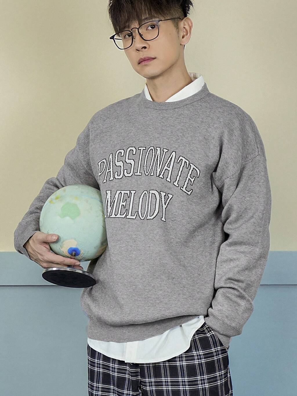 Men's Casual Slogan Pattern Round Neck Long Sleeve Loose Sweater, Autumn