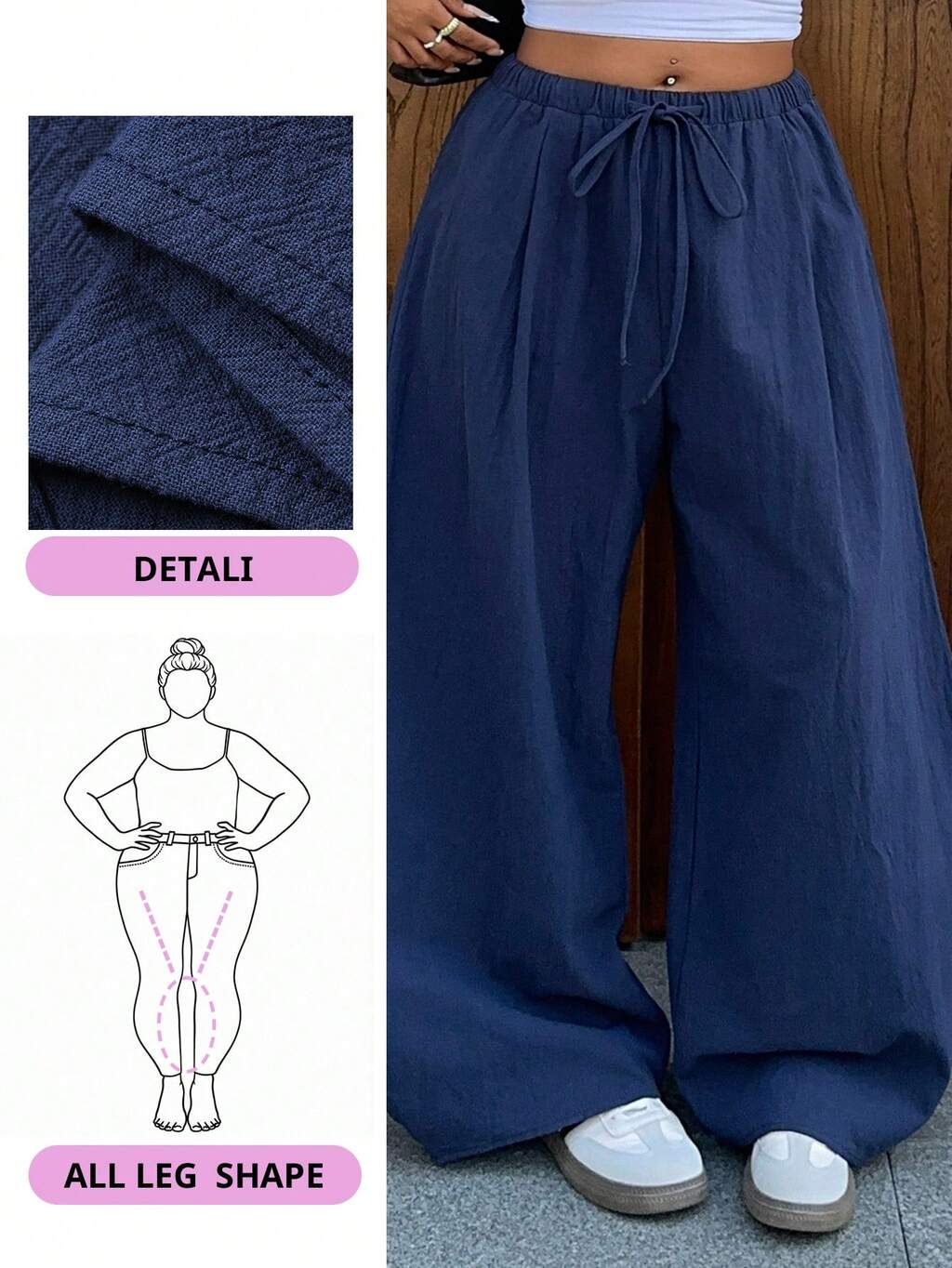 Dazy Plus Plus Size Casual Solid Color Slant Pocket Drawstring Waist Wide Leg Pants